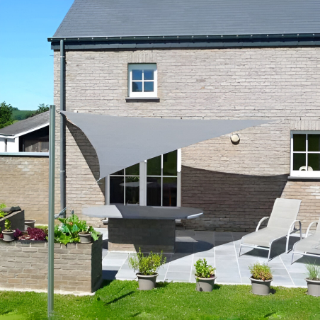 Espace Ombrage has thought of all those who wish to install a triangular shade sail on their terrace but who only have one wall to do so. We offer a ready-to-use kit consisting of 2 wall fixings and an adjustable pole via which you can adjust the height of your sail to adapt to the changing position of the sun.