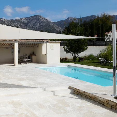 Durante la instalación, cree una pendiente del 25% entre los diferentes puntos de fijación para permitir que el agua de lluvia escurra. Por ejemplo, si el lado de su vela tiene 3 metros de longitud, tendrá que crear una pendiente de 75 cm (3 x 0,25).