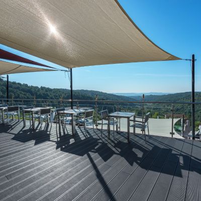 Spécialisé dans la voile d'ombrage professionnelle depuis plus de 15 ans, Espace Ombrage équipe les professionnels de l'hôtellerie et de la restauration dans leurs projets d'aménagements extérieurs pour satisfaire et maximiser l'expérience client. Rooftop, patio, terrasse pour déjeuner ou dîner, lieu au bord d'une piscine, de la mer ou en pleine nature, les toiles tendues stylisent vos espaces extérieurs tout en les abritant. Elles viennent remplacer les moyens d'ombrage professionnel plus encombrants et/ou moins résistants comme les parasols, les pergolas ou les store-bannes pro. Vous garantirez ainsi à vos clients une expérience visuelle et globale réussie !
