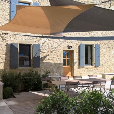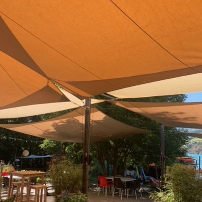 Nous vous proposons plusieurs gammes de voiles (type voile ombrage résistante aux vents ou toile ombrage imperméable) selon vos besoins (norme M1 disponible notamment pour l'Australe 340 résistante au vent). En fonction de votre plan d'aménagement extérieur (ombrage ou bien déco d'extérieure), nous pouvons vous concevoir des projets bien spécifiques qui répondraient à votre demande (voile en PVC, couleur/format spécial, etc.). Les toiles d'ombrage en fibre de coco naturelles sont également très tendances pour les terrasses d'hôtels et restaurants afin de tamiser la lumière et apporter une touche déco. Votre satisfaction et celle de vos clients étant notre priorité, nous vous conseillons sur les bons choix en terme de gamme, de coloris mais aussi de fixations (par exemple de piquet pour voile ombrage) pour aménager votre terrasse.