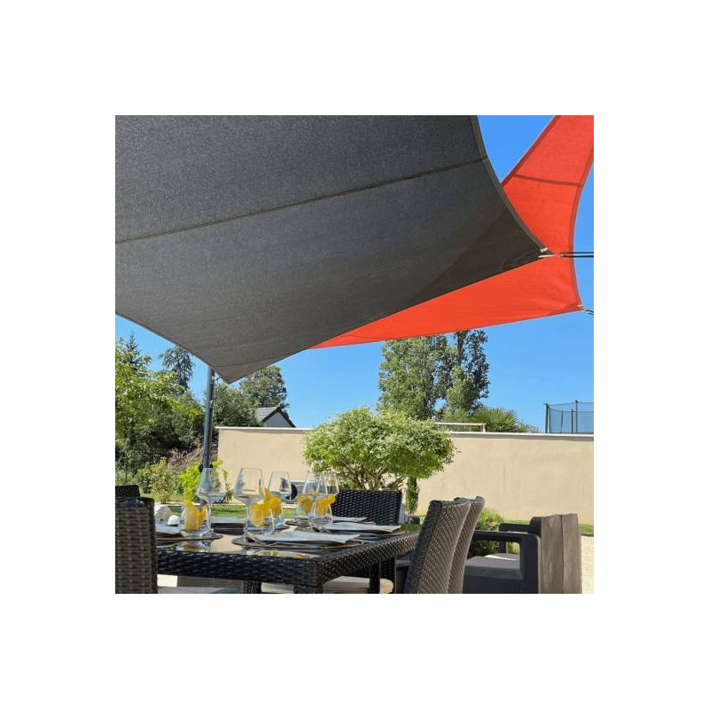 La taille de la voile d’ombrage sous tension peut varier jusqu’à +/- 5% par rapport à la taille donnée, en raison de l’élasticité du tissu, des processus de fabrication et de la tension apportée à la voile.