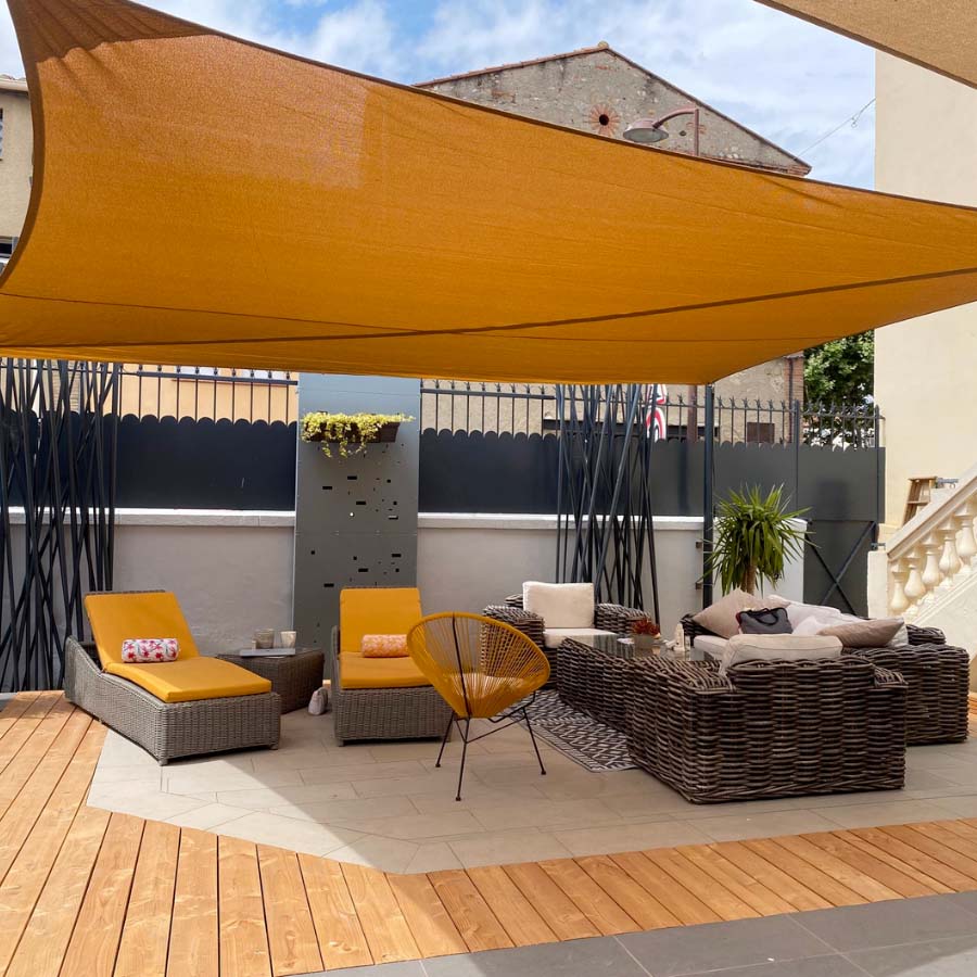 Vous pouvez directement choisir la forme de votre voile d’ombrage : triangle, triangle rectangle, rectangle, carré ou encore trapèze.